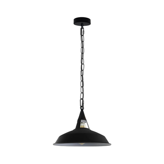Black (White Inner) Barn Style Industrial Pendant Light - With Chain