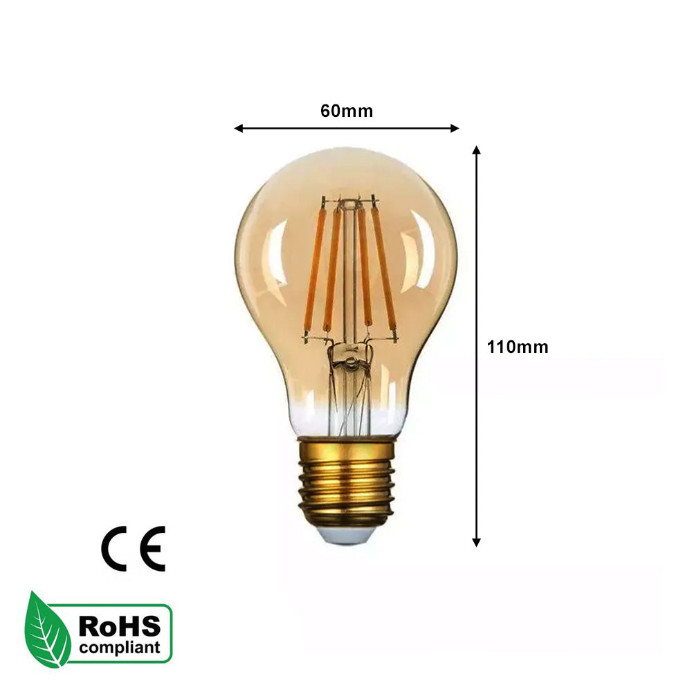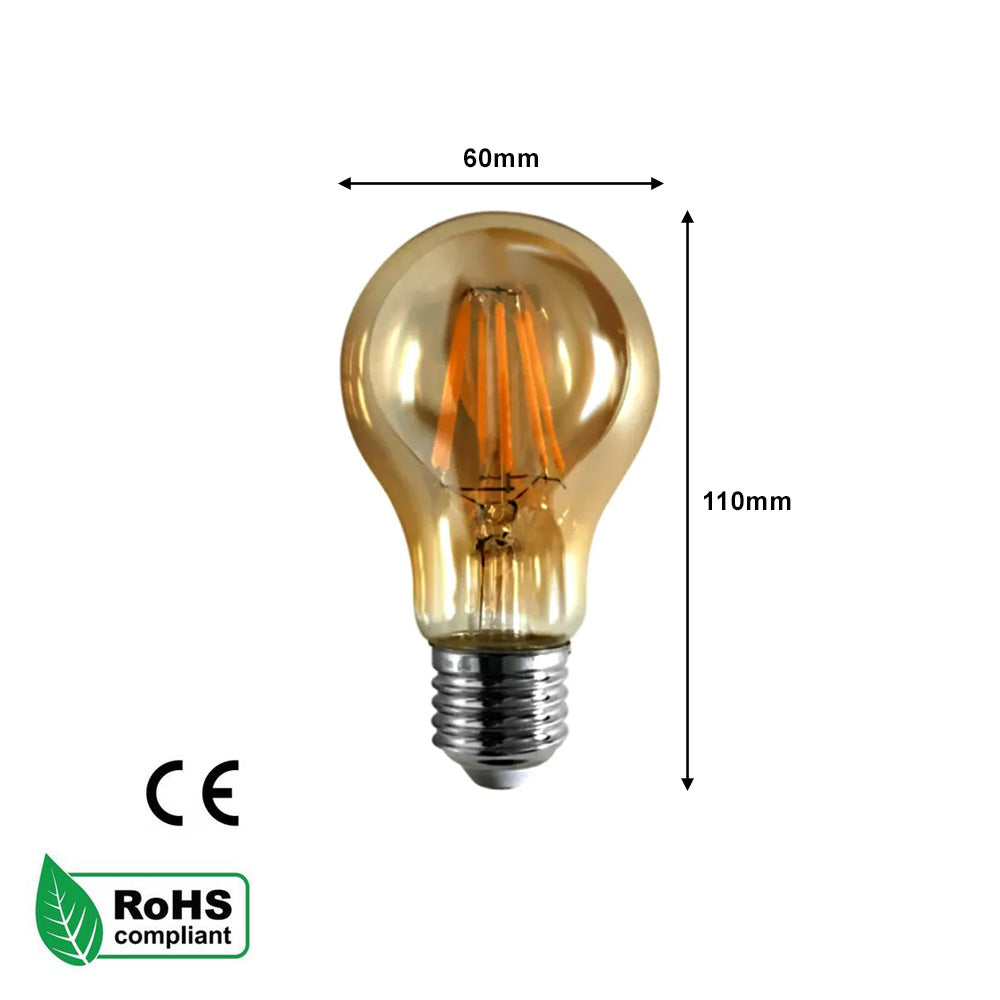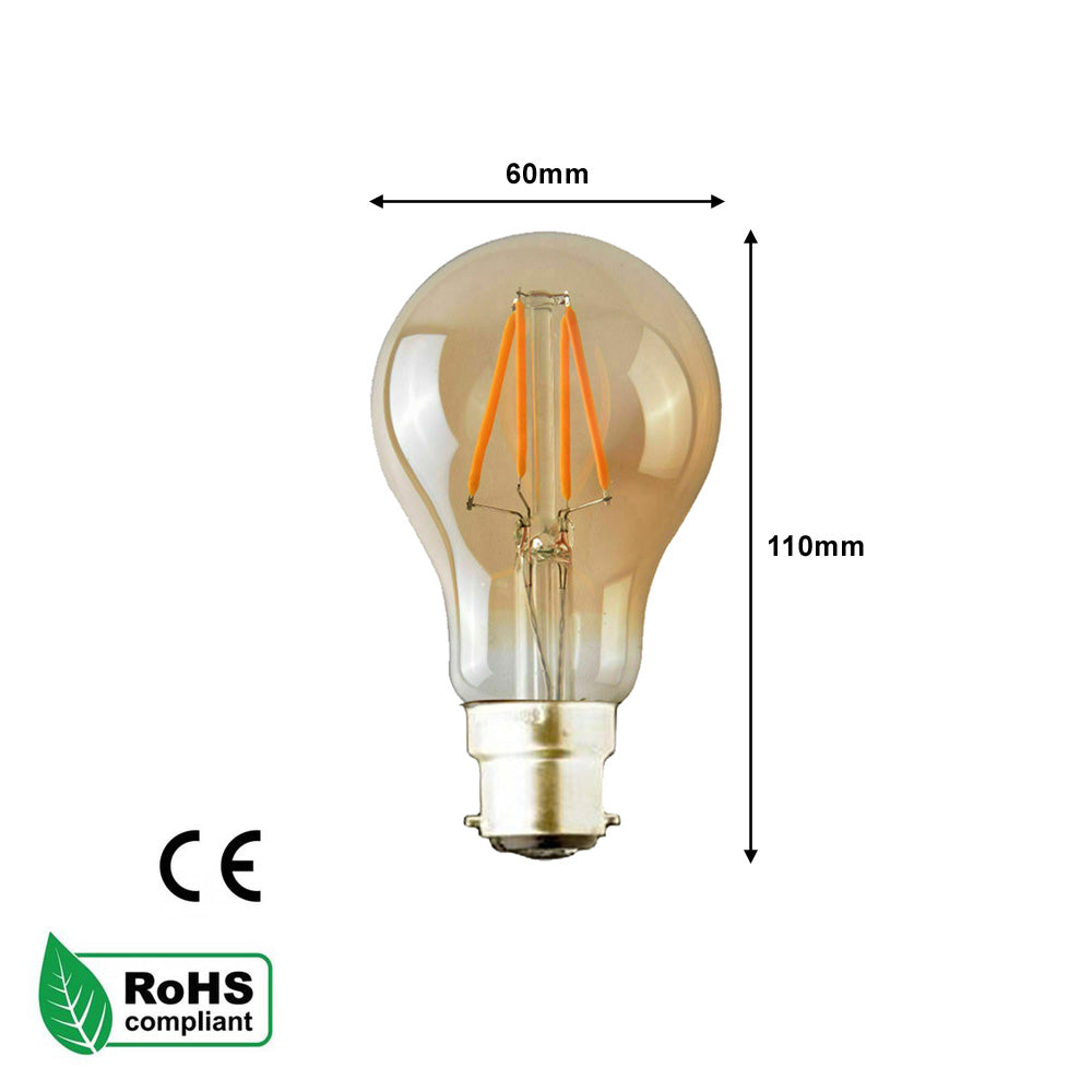 A60 B22 / E27 - 4W / 8W Edison Dimmable LED Bulbs - Vintage Amber / Cool White - 2 Pack