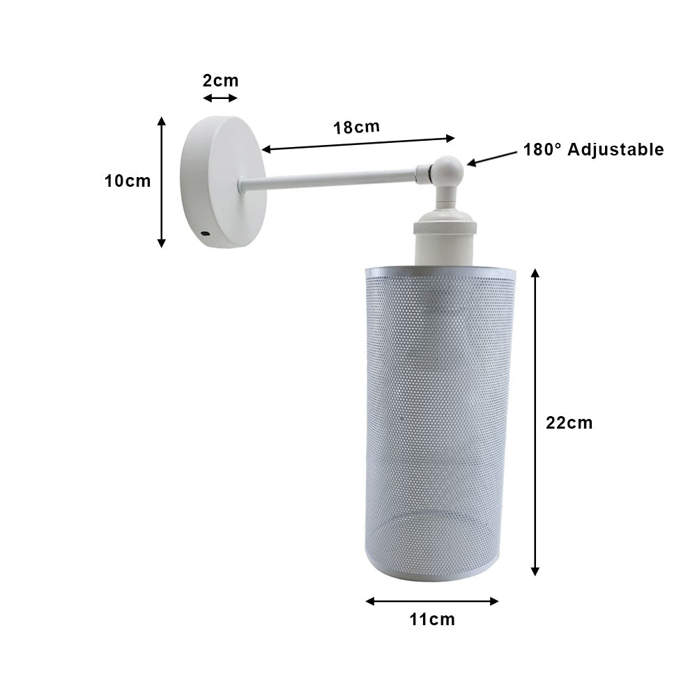 This Black Cage Cylinder Wall Light features a simple yet elegant design that is sure to complement any space. The light is made from durable materials and has a mesh shade that produces a warm inviting glow. You can also adjust the bulb holder and shade by 180° to create different lighting effects.
