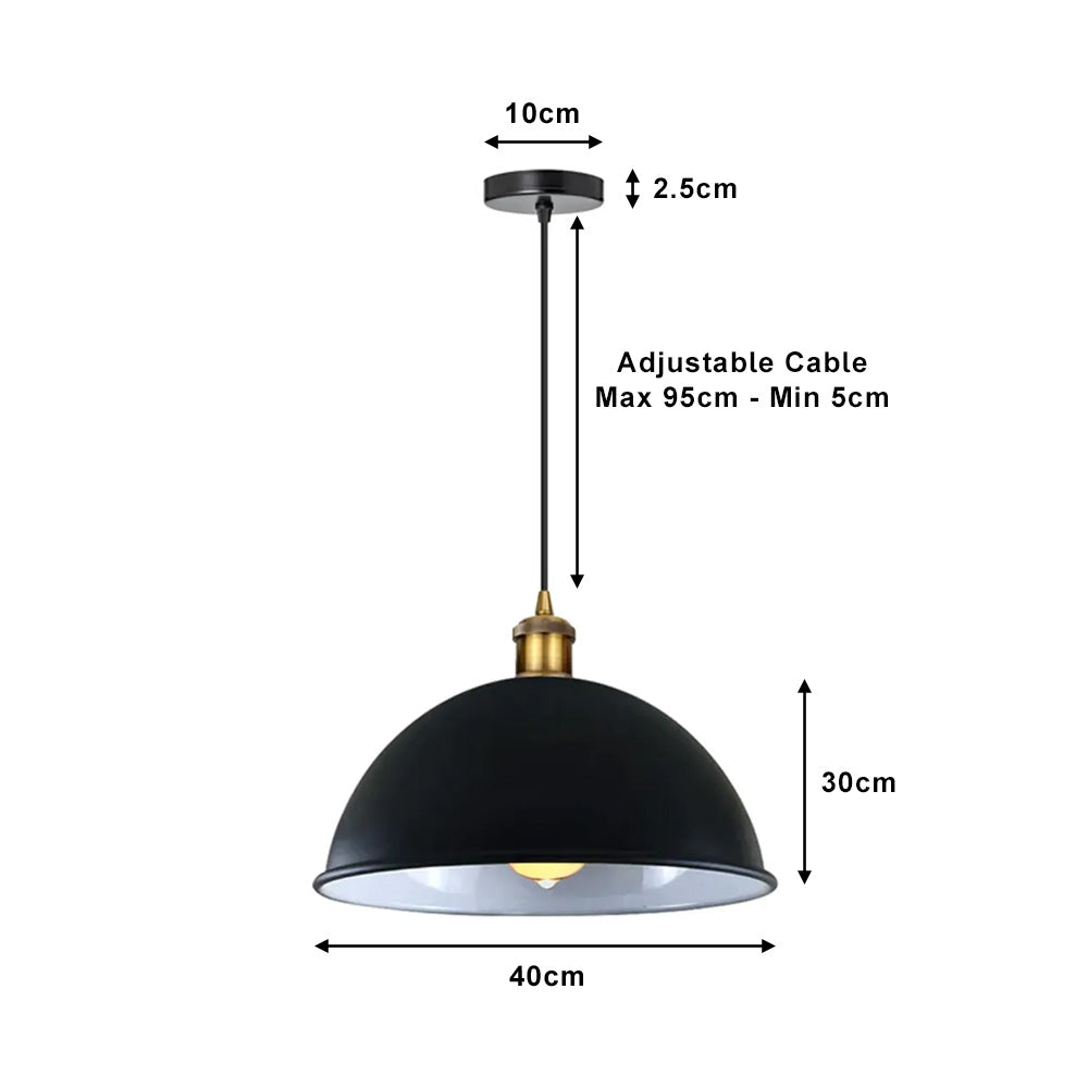Elevate your interior with the timeless charm of the Black Large Dome Pendant Light. This metal ceiling fixture is the epitome of rustic elegance, perfectly blending with various decor to enrich the stylishness of your space. Whether it's casting a soft glow over a dining table or adding a vintage touch to your cafe or bar, its dome-shaped design and adjustable 95cm cord ensure focused lighting and customizable height, making it a durable and attractive choice for any room.