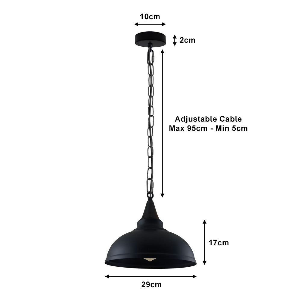 Black (Black Inner) Vintage Style Industrial Chain Pendant Light - Cone Lamp Holder