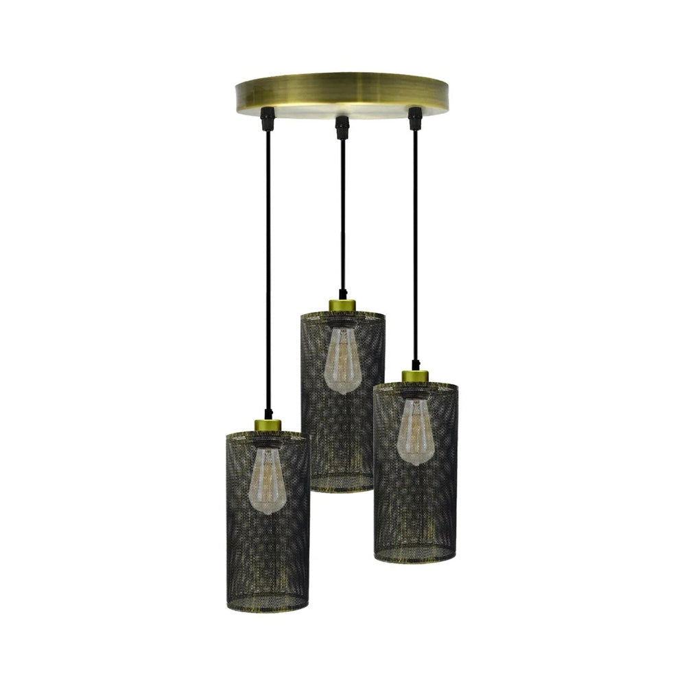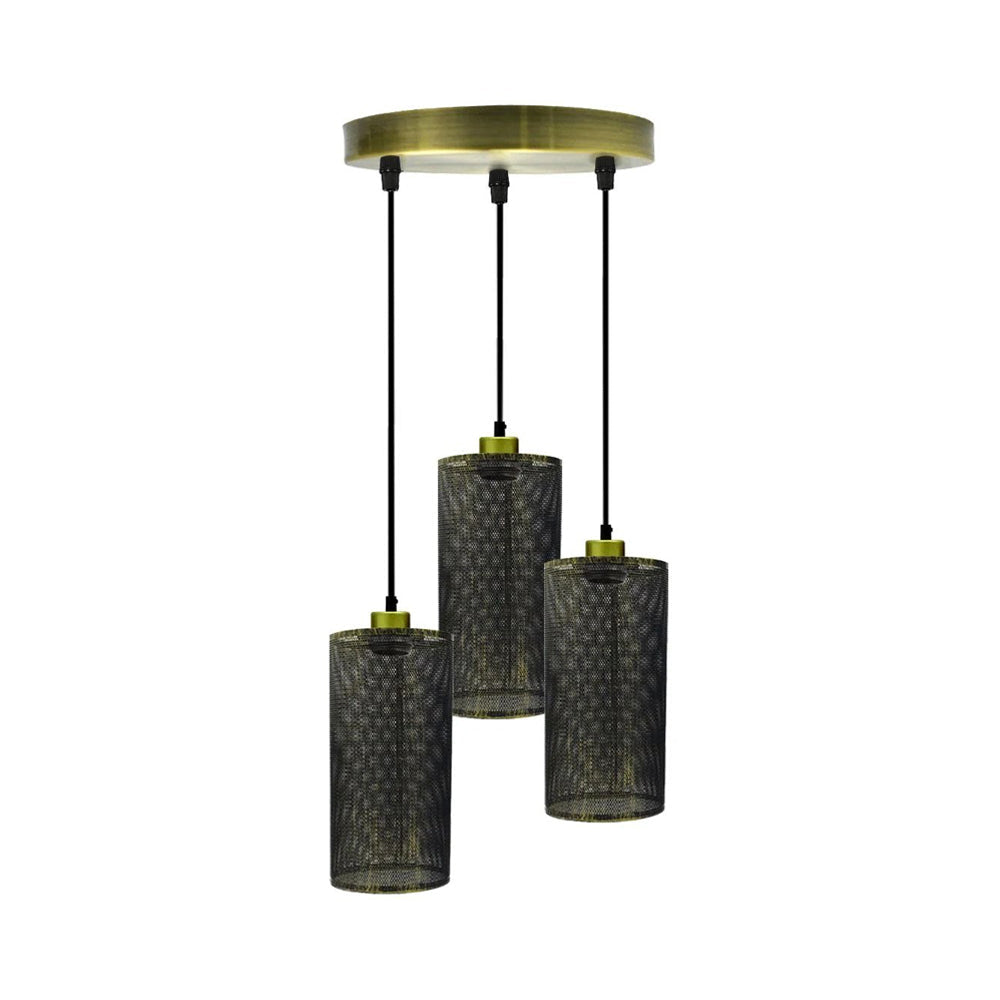 Brushed Brass 3 Way Cage Cylinder Pendant Light