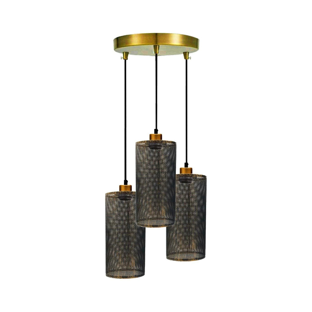 Brushed Copper 3 Way Cage Cylinder Pendant Light