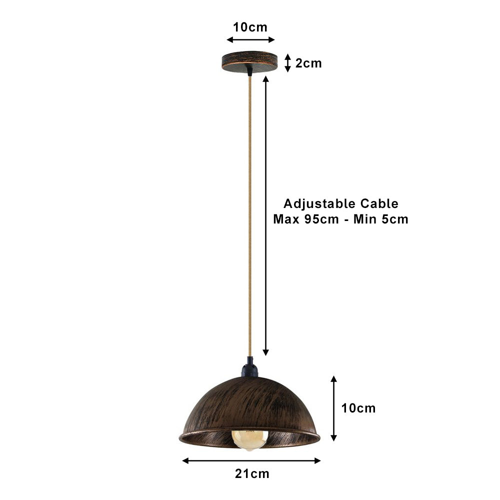Designed with precision and care, this brushed copper small dome pendant light features a 95cm adjustable hemp cable, ensuring a perfect fit for rooms with diverse ceiling heights. Perfect for enhancing spaces from snug cottages to expansive areas with high ceilings, this light fixture offers customization to meet your unique lighting requirements. Its versatility and design make it a superb option for every room in your home, effortlessly complementing both contemporary and traditional kitchen areas with its subtle sophistication and adding a touch of elegance to your décor.