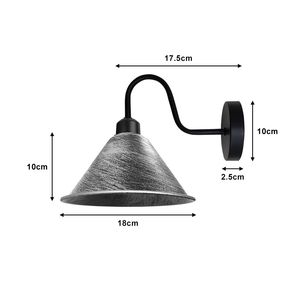Brushed Silver Cone Vintage Swan Neck Wall Light - Without Bulb