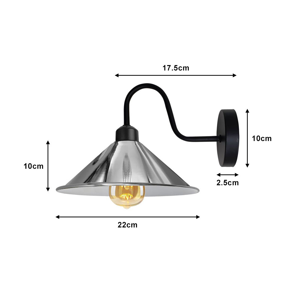 Chrome Cone Retro Swan Neck Wall Light - With Bulb