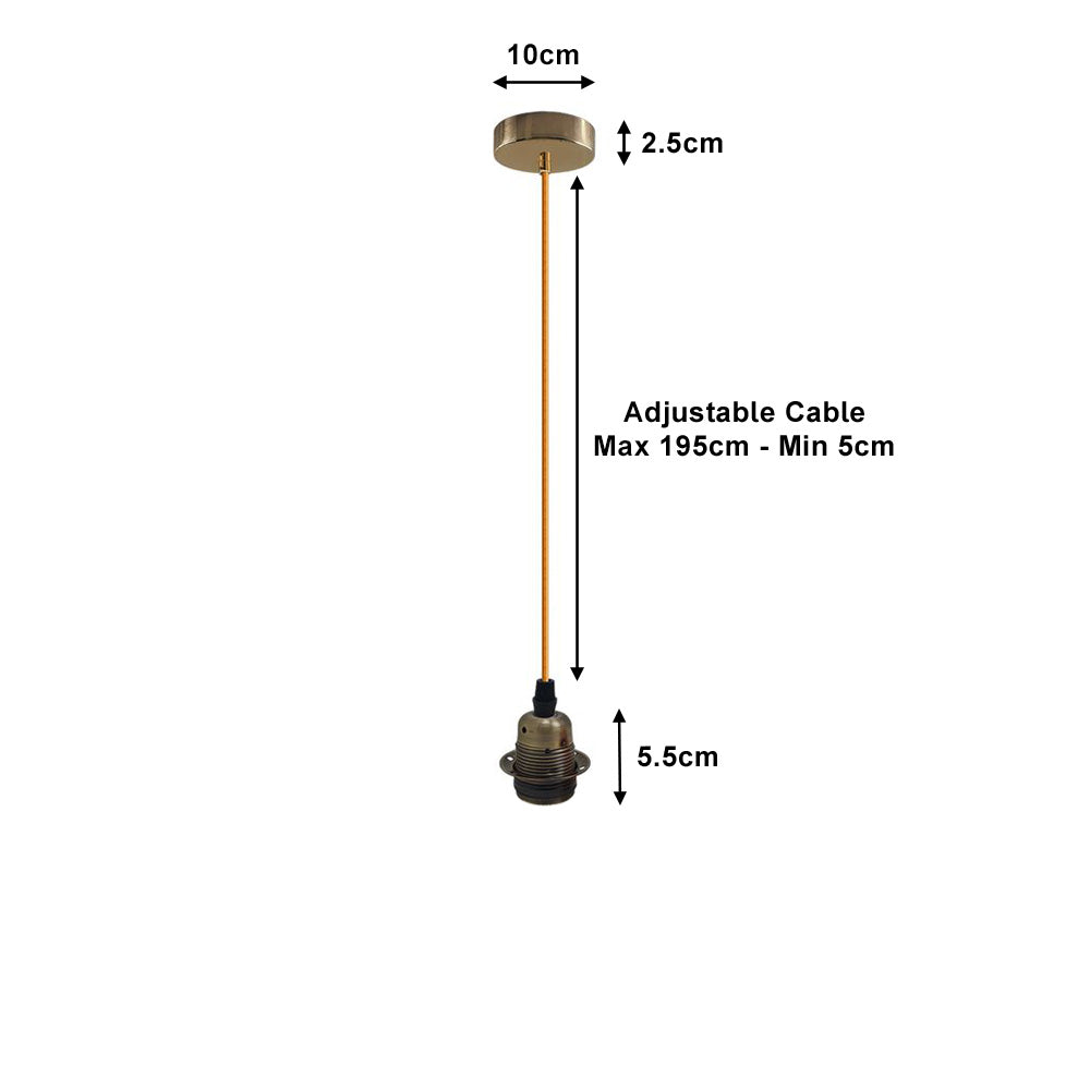 Enhance your home with the distinctive and classic appeal of the Vintage Industrial Pendant Light Fitting in Green Brass. Available as a 2-pack, each fitting showcases a unique green brass finish lamp holder paired with a matching brass-coloured ceiling plate, adding an element of antique aesthetic to your space. The 195cm adjustable cable ensures that the height can be customized to fit various settings, ideal for areas that require a refined and nostalgic look. Perfect for creating a statement in classic or eclectic decors, these green brass pendants offer a stylish focal point with a hint of vintage elegance.