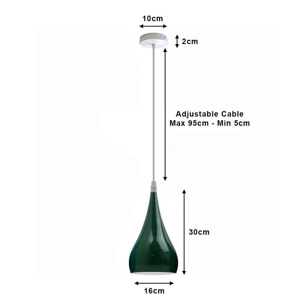 If you're looking for a light that is simple, modern, and elegant, look no further than this Green Teardrop Pendant Light. With a voluminous, teardrop shaped shade, this fabulous Ceiling Pendant Light will add class to any room. Perfect for use in your kitchen, dining room or bedroom, it would make a great focal point either as an individual light, or as a row of lights. Order yours today and enjoy the stylish ambience it adds to your home.