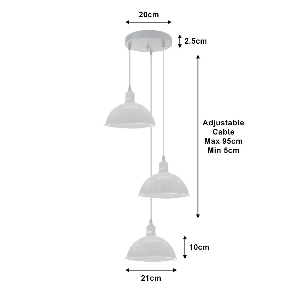 Create a clean, cohesive look with the Small Dome Triple Pendant Light in white. This elegant lighting solution features three dome-shaped shades, all beautifully finished in a pristine white, enhanced by white interiors to ensure a bright, uniform light. Equipped with matching lamp holders and adjustable 95cm cables, this pendant light is perfectly suited for brightening modern kitchens, minimalist living areas, or airy hallways, offering a sleek, modern lighting solution that integrates seamlessly into contemporary decor while providing ample illumination.